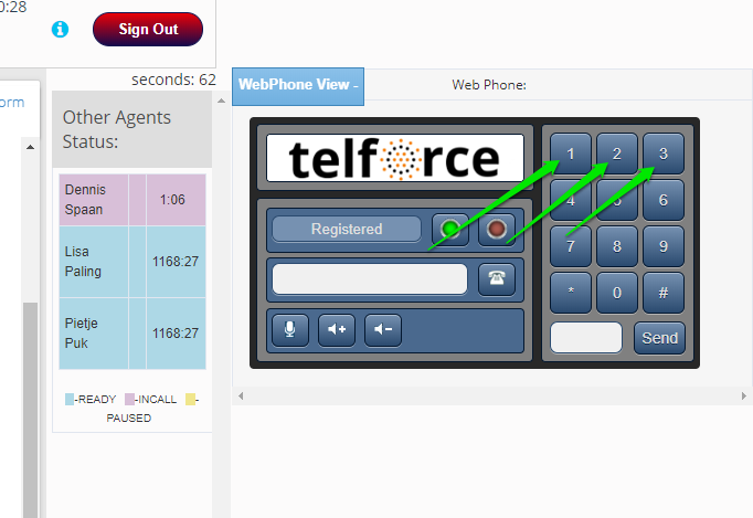 Do you use the integrated webphone? That is also possible by moving to the right with the lower scroll bar so that the webphone becomes visible and simply press the keys on it.